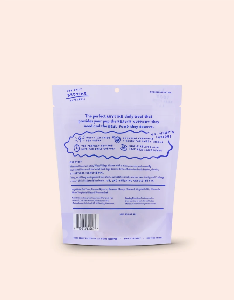 We are not the only ones in need of some daily TLC. Let’s keep your pup feeling not a day over one, and extra fresh for those sloppy ‘welcome home’ smooches. Sweet Dreams Dailies are baked with soothing chamomile and honey for sweet dreams in a luscious banana and honey recipe.