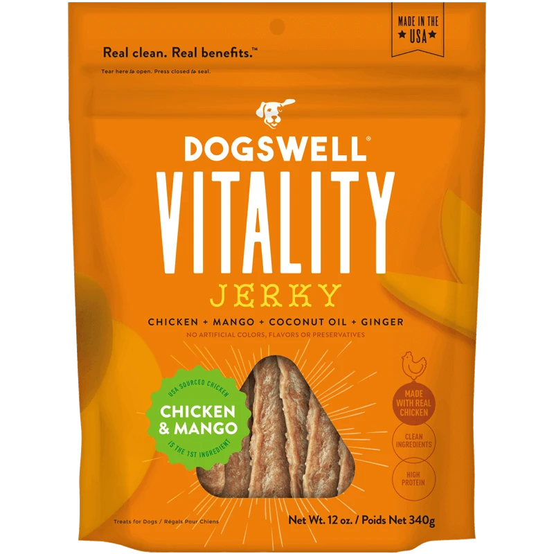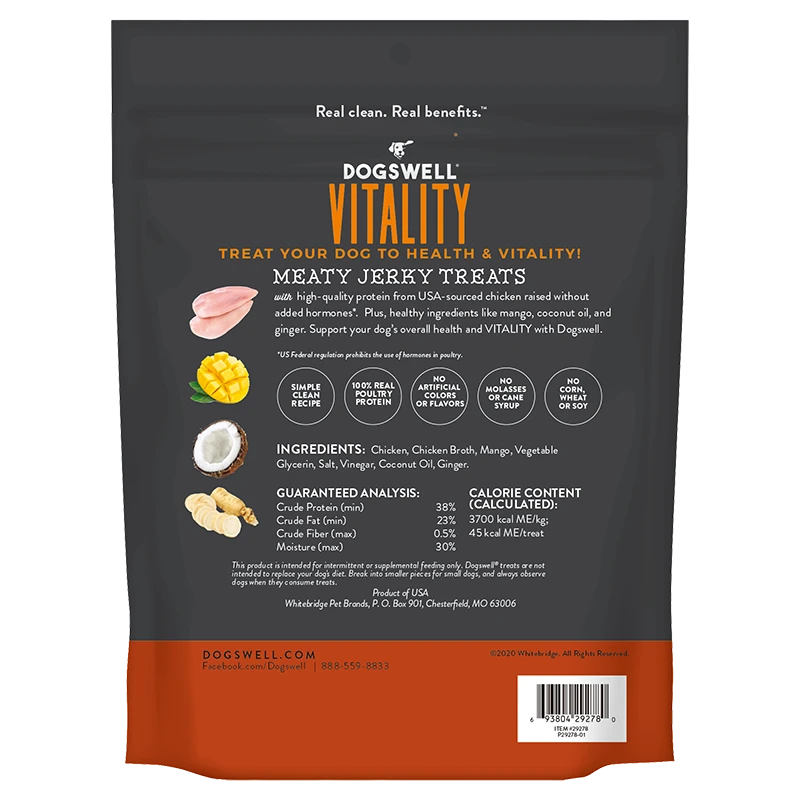 This jerky is great treating option to include in your dog’s diet as part of a proactive nutritional approach. Formulated to support overall health and vitality, this delicious meaty treat combines USA-sourced chicken with nutrient-rich mango, coconut oil and ginger.