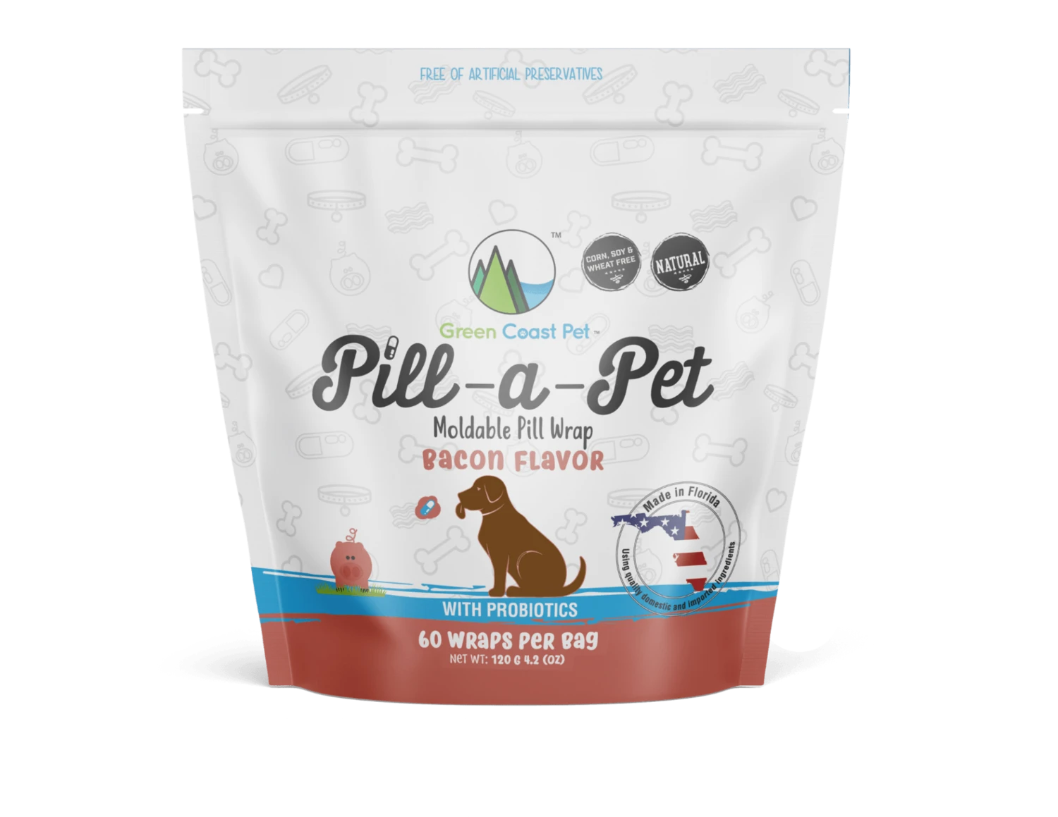 Pill-a-Pet is the perfect pill administration solution for your dog! No more do you need to watch your dog chew around the pill and spit it out. With Pill-a-Pet, you just tear off the amount you need to coat any size pill and this bacon flavored wrap will stick to the pill snugly and taste great to your pup.