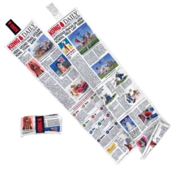 KONG Daily delivers a 3-foot long special edition that stays closed with a hook-and-loop strap to make an ideal tug toy and unfurls for instinct-satisfying thrashing fun. This journal of joy delivers a doggy digest with 6 squeakers that prolong play and a soft, baby plush side ideal for napping after catching up with the headlines.