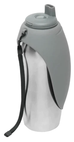Our award winning travel water bottle and bowl is easy to use and ideal for walks, hikes and road trips. Just fold up the silicone bowl and press the quick release button to quench your messy mutt’s thirst! Unused water drains back into the stainless steel bottle after use and the bowl folds back over the bottle for easy portability.