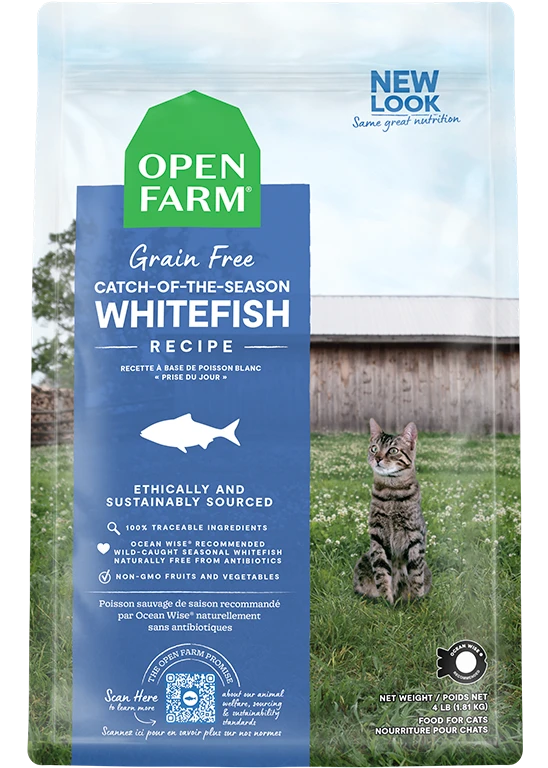 Open Farm Catch-of-the-Season Whitefish Recipe is formulated to meet the nutritional levels established by the AAFCO Cat Food Nutrient Profiles for all life stages.
