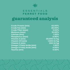 - No corn, peas or potatoes – supports your ferret’s specific nutritional needs