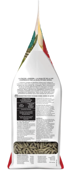 Oxbow’s Essentials – Young Guinea Pig Food is formulated to meet the specific nutritional needs of young, pregnant, and nursing guinea pigs and help them thrive. This complete and balanced young guinea pig food contains Alfalfa hay to provide optimal energy and the fiber essential for healthy digestion. We then add wholesome ingredients and vital nutrients to meet the growth, energy, pregnancy, and nursing needs of guinea pigs.