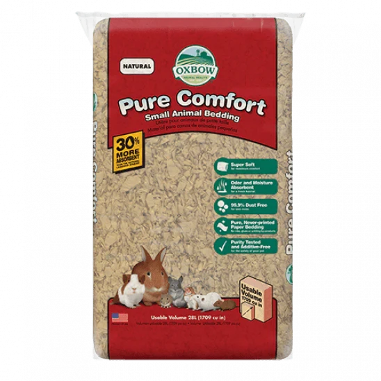 Soft, safe, and sure to please! Oxbow’s Pure Comfort Natural bedding is made of 100% pure, never-printed paper to create a clean, safe, and ultra-soft bedding material for pets of all sizes. Pure Comfort provides superb odor control and moisture absorption, making cleanup easy.