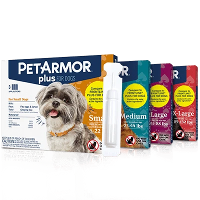 Your family is our family. We’re here to help protect your dog with vet-quality care you can use at home. With the same active ingredients as FRONTLINE® Plus for Dogs for less,* PetArmor Plus for Dogs is a fast-acting topical that kills fleas, flea eggs, flea larvae, ticks and chewing lice for up to 30 days. Reapply monthly to kick pests to the curb year-round.