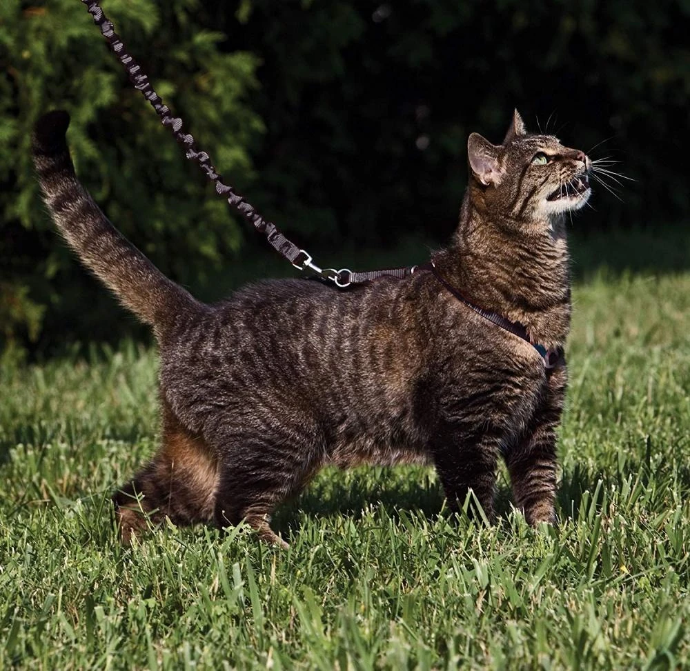 The Come With Me Kitty Harness and Bungee Leash can help you enrich your cat’s life with the sights, sounds, and smells of a safe outdoor experience. It gives you gentle, comfortable control of your cat or kitten. Now you can share enjoyable walks, exercise, and playtime outside your home. The bungee leash was specially designed to gently and securely control your cat. When your cat moves forward, the leash flexes with your cat’s movement and tightens across the harness shoulder straps. This removes pressure from the delicate throat area, preventing your cat from choking or escaping.