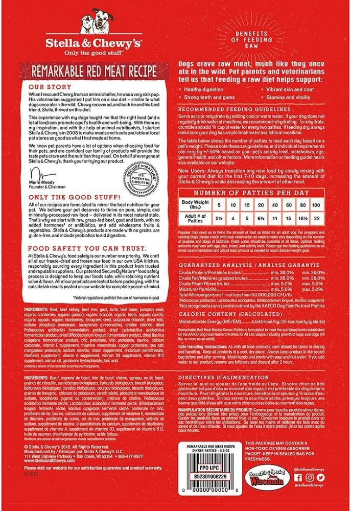 These Red Meat freeze-dried patties (5.5 oz offering) are formulated to mirror a dog’s ancestral diet! There has never been a more convenient way to feed a biologically appropriate raw food diet. We believe dogs deserve to thrive on real, minimally processed food – the way nature intended.