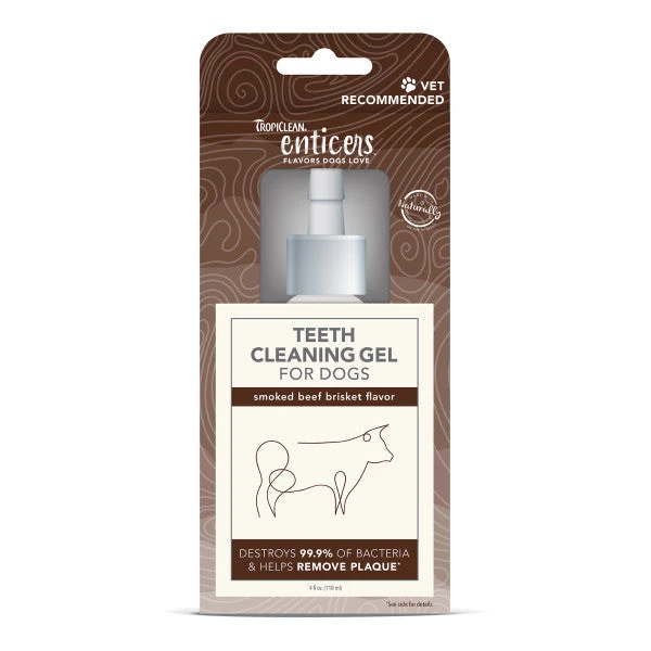 Say hello to your dog’s new favorite delicacy. TropiClean Enticers Teeth Cleaning Gel is a savory oral care solution with a smoked beef brisket flavor that will have your dog begging for clean teeth. Gel is made with naturally derived ingredients and proven to help eliminate 99.9% of the root cause of plaque and bad breath.