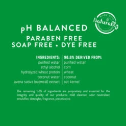 Water, Mild Cleanser, Odor Neutralizer, Organic Extracts of Oatmeal and Cucumber