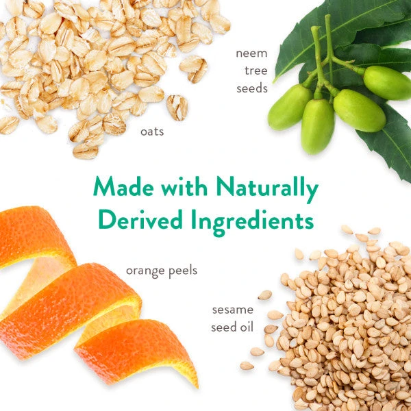 Water, Mild Coconut Cleanser, Sesame Seed Oil, Colloidal Oatmeal, Neem Oil, Orange Extract, Ethyl Alcohol, Propylene Glycol, Docusate Sodium, Pine Extract, Emulsifier, Fragrance.