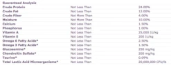 Lamb, Lamb Meal, Oatmeal, Ground Barley, Menhaden Fish Meal, Ground Brown Rice, Peas, Rice, Ground Flaxseed, Chicken Fat, Tomato Pomace, Tomatoes, Carrots, Natural Lamb Flavor, Potassium Chloride, Choline Chloride, Spinach, Vitamin E Supplement, Taurine, Zinc Proteinate, Mixed Tocopherols Added to Preserve Freshness, Sweet Potatoes, Apples, Blueberries, Zinc Sulfate, Calcium Carbonate, Niacin, Ferrous Sulfate, Iron Proteinate, Vitamin A Supplement, Glucosamine Hydrochloride, Chondroitin Sulfate, Ascorbic Acid (Vitamin C), Copper Sulfate, Thiamine Mononitrate, Copper Proteinate, Chicory Root Extract, Manganese Proteinate, Manganese Sulfate, D-Calcium Pantothenate, Sodium Selenite, Pyridoxine Hydrochloride, Riboflavin, Garlic Powder, Yucca Schidigera Extract, Vitamin D3 Supplement, Biotin, Calcium Iodate, Vitamin B12 Supplement, Folic Acid, Dried Lactobacillus Plantarum Fermentation Product, Dried Enterococcus Faecium Fermentation Product, Dried Lactobacillus Casei Fermentation Product, Dried Lactobacillus Acidophilus Fermentation Product, Rosemary Extract, Green Tea Extract, Spearmint Extract.